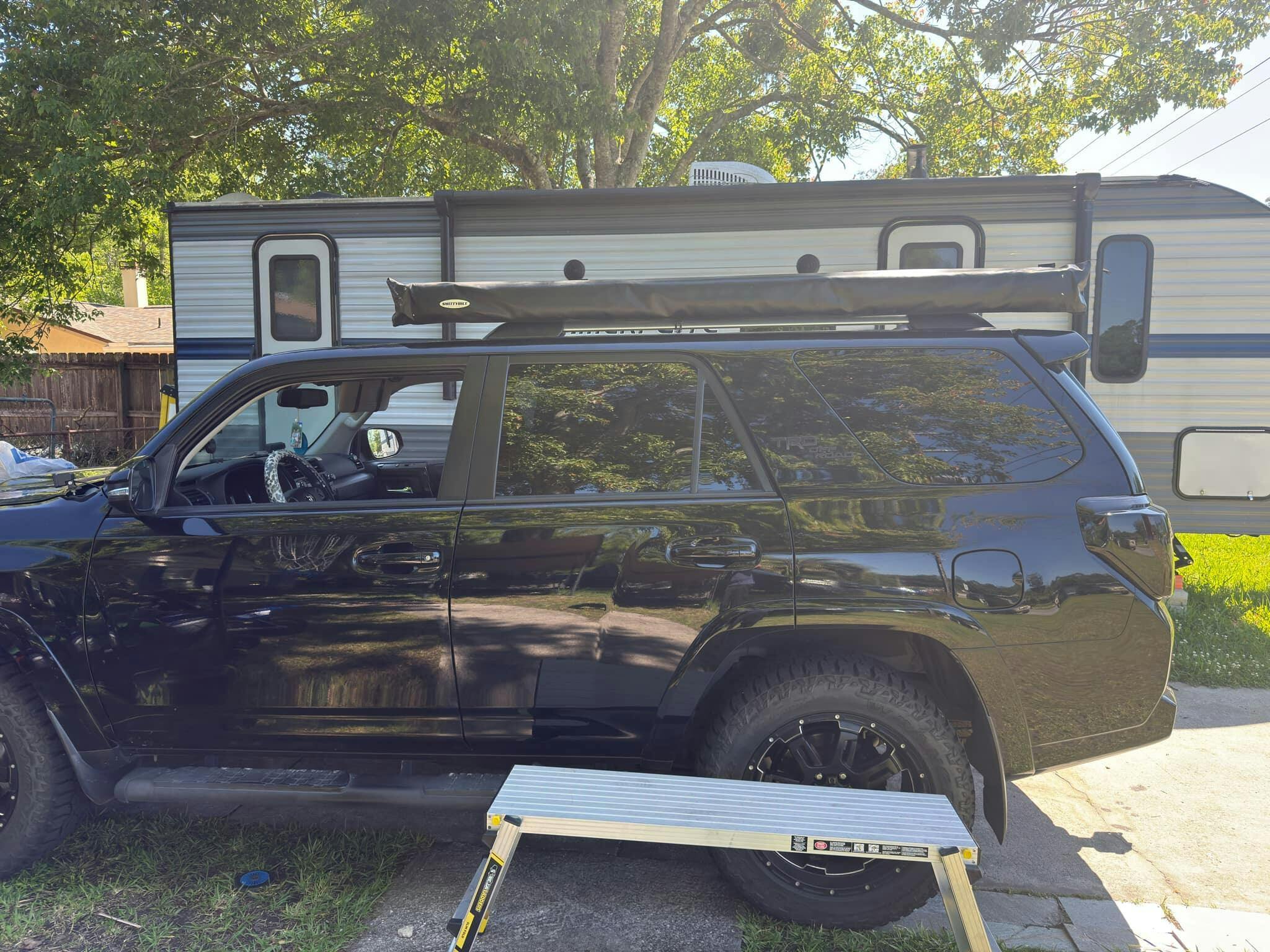 Works very well on my 2020 4Runner and not pricey. Clears standard overhead garage door so it can stay on the 4Runner. With the iron man 4x4 quick release mounts installing and removing the awning is a breeze.